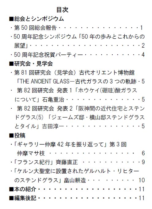日本ガラス工芸学会 総務委員会・事務局 ニューズレター編集部発行。